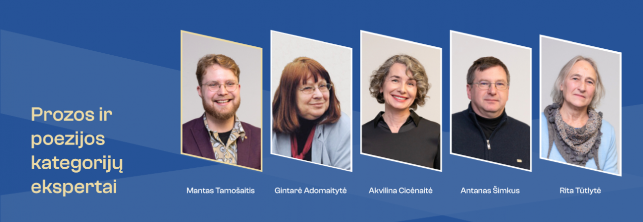 Komisija, vertinanti suaugusiesiems išleistas prozos ir poezijos knygas: Mantas Tamošaitis – literatūrologas, komisijos pirmininkas; Gintarė Adomaitytė – rašytoja, kultūros svetainės „Meno bangos“ projektų vadovė; dr. Akvilina Cicėnaitė – rašytoja, vertėja, literatūros tyrėja; Antanas Šimkus – literatūros žurnalo „Metai“ vyr. redaktorius; dr. Rita Tūtlytė – literatūrologė.